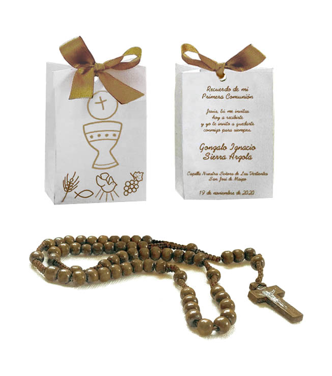 Rosario en bolso cinta recuerdo primera comunión