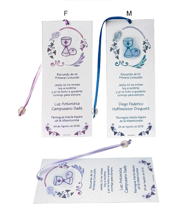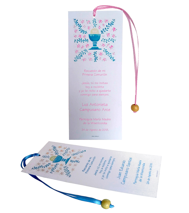 Rosario de madera en bolso cinta recuerdo de Comunión