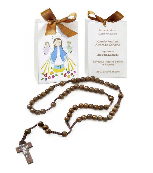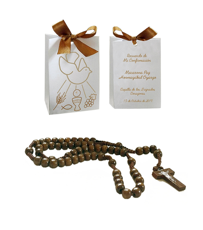 Rosario de madera en bolso regalo de confirmación