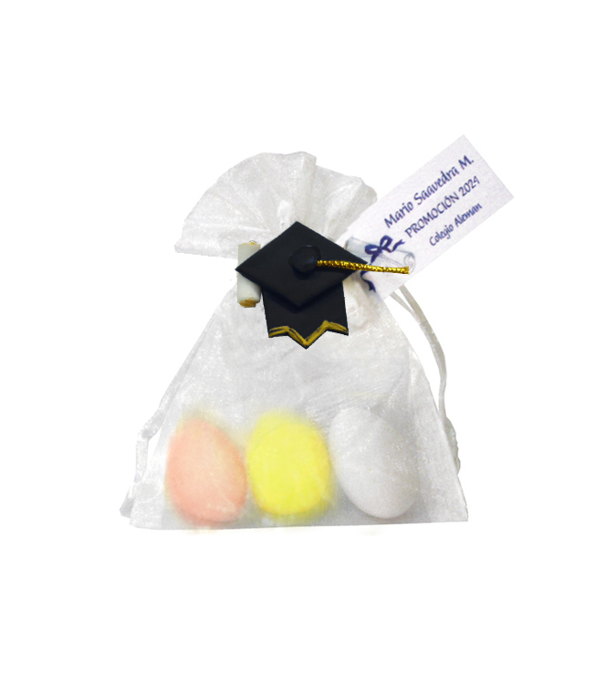 Bolsoa organza birrete ceramica recuerdo de Graduación