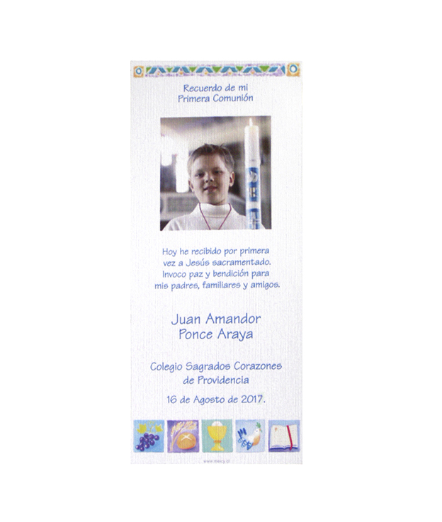 Productos > Celebraciones familiares > Celebraciones familiares Primera Comunión > Santito marcalibro de primera comunión