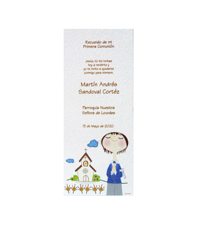 Productos > Celebraciones familiares > Celebraciones familiares Primera Comunión > Santito marcalibro de primera comunión