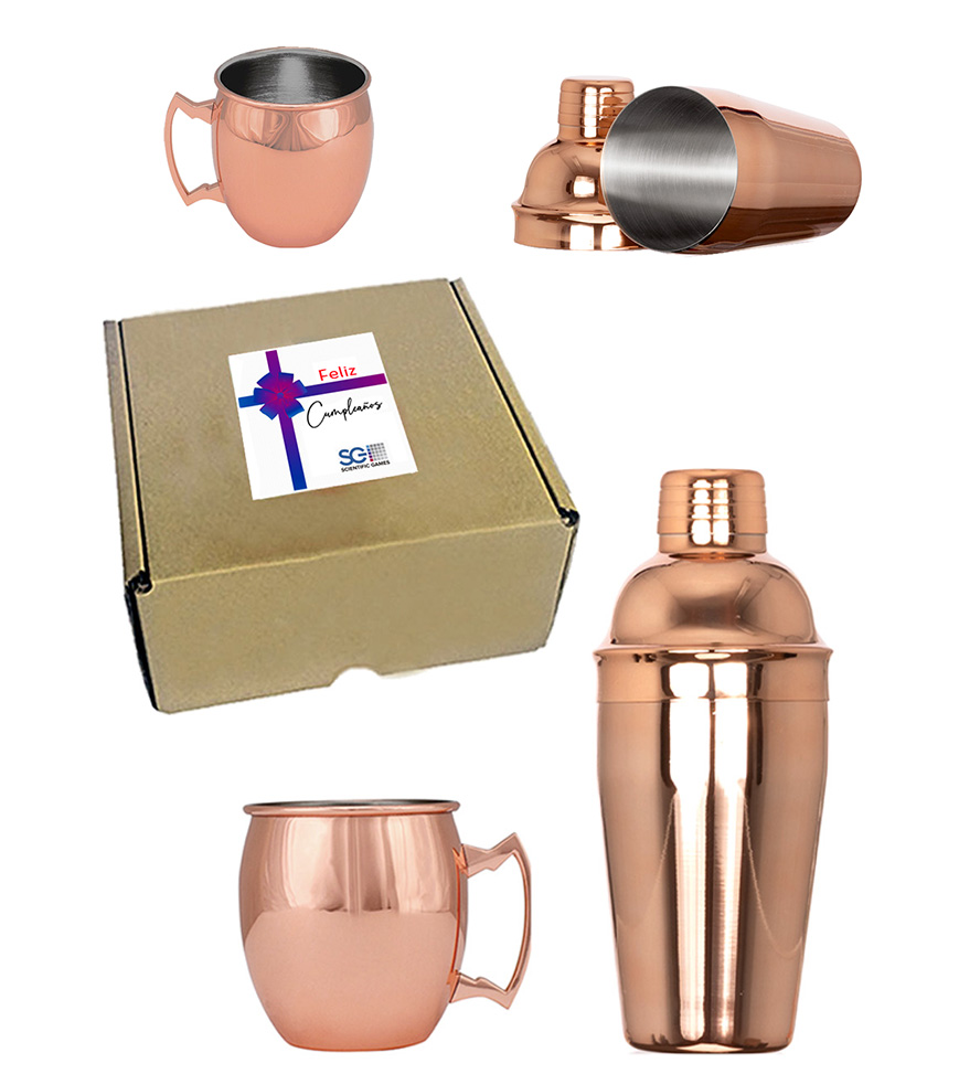 Coctelera y tazón encobrizado regalo de cumpleaños