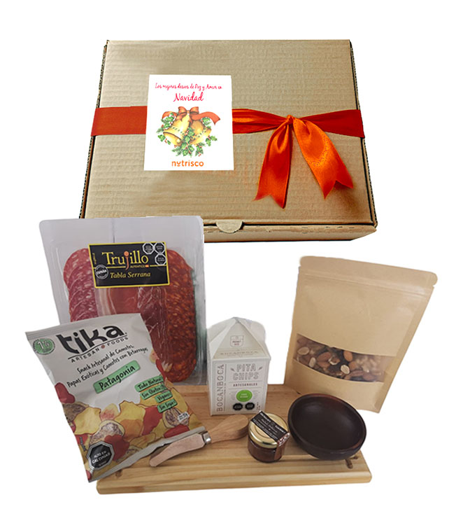 Tabla de madera de pino, finas terminaciones, mide 29.5 x 23 x 2 cm. con set de pinchos Deco peltre vino en caja ecológica, miden 10 cm. Packing: Caja de cartón reciclado con etiqueta con ocasión personalizada, con cinta de satín a elección y papel de seda.