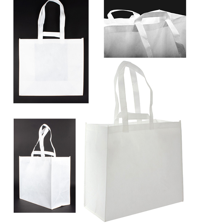 Bolsa reutilizable de tela no tejida (TNT) de 80g/m2. Tamaño: 39,5 x 30 x 12 cm Material: Tela TNT elaborada con polipropileno (PP), no tejido.